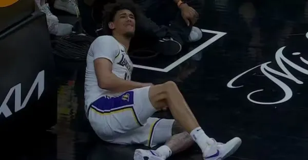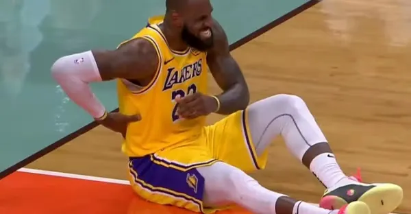 扣個籃把自己扣傷了!湖人神塔最後1分鐘重傷,詹皇氣得眉頭緊鎖