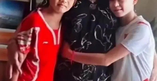 全紅嬋戴簪花和弟弟妹妹合影,全紅月變漂亮了,全進鵬比姐姐高