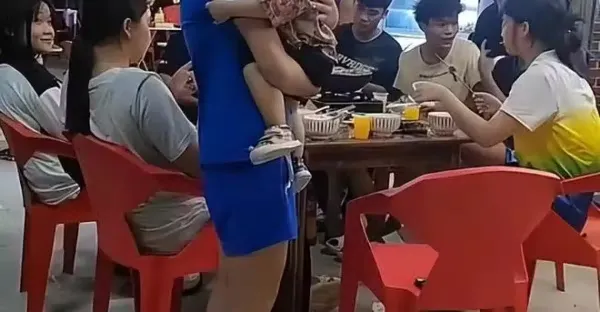 全紅嬋抱孩子吃大排檔,回家後越來越可愛,本地村民都很愛護她