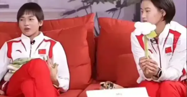 不一樣!央視採訪中,全紅嬋全程躺倒、翹二郎腿,陳芋汐坐姿端正