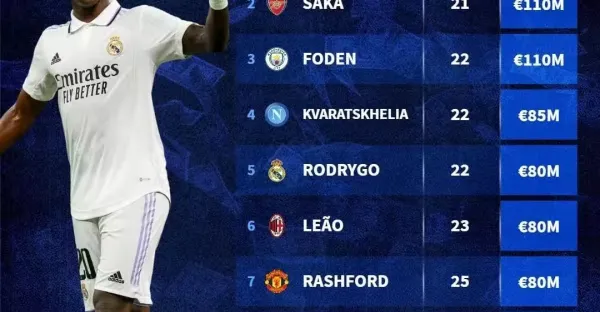 1.2億歐登頂,德轉邊鋒最新身價榜,拉什福德第七,槍手雙星亦上榜