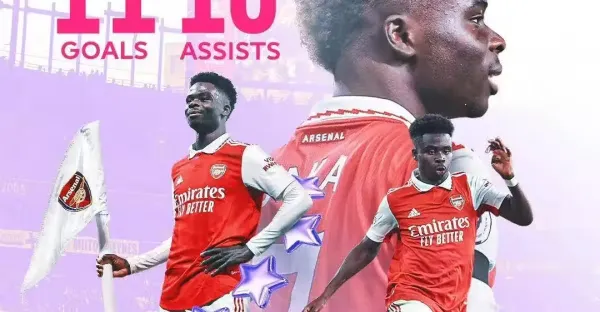 阿森納豪取六連勝!薩卡梅開二度,阿森納領先曼城8分!