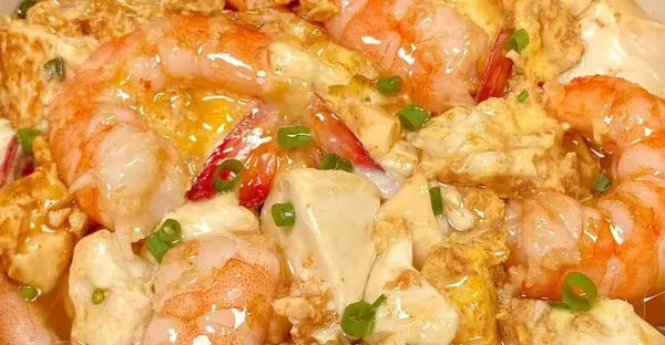 雞蛋蝦仁抱豆腐巨好吃,有幸在親戚家吃過一回,被驚艷到了!!