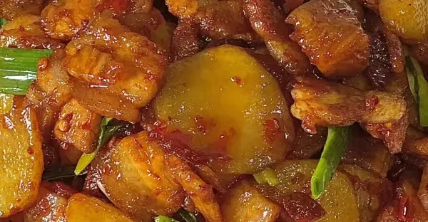 飯店的土豆回鍋肉好吃有竅門,教你做法,入口綿香,肥而不膩