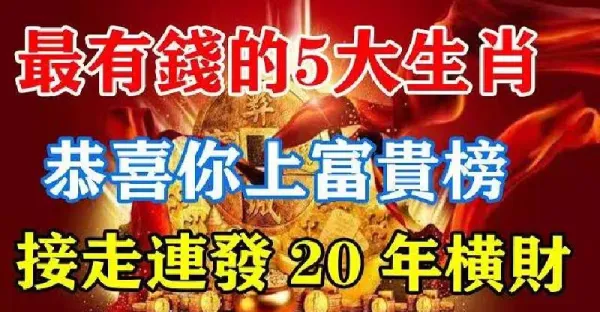 別錯過!2026年最有錢,財運最爆的5個生肖,第1名特別驚人!