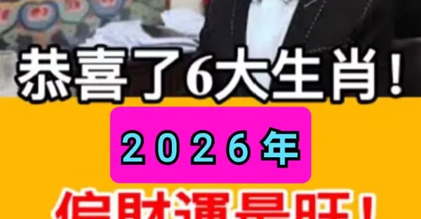 恭喜了6大生肖 2026年, 偏財運最旺! 很有機會中大獎