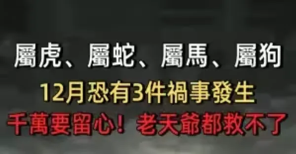 「 屬虎、屬蛇、屬馬、屬狗」 12月恐有3件禍事發生, 千萬要留心