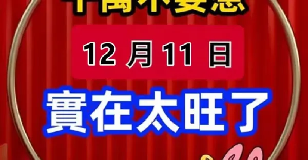 明天12月11日 四生肖 大財降臨!