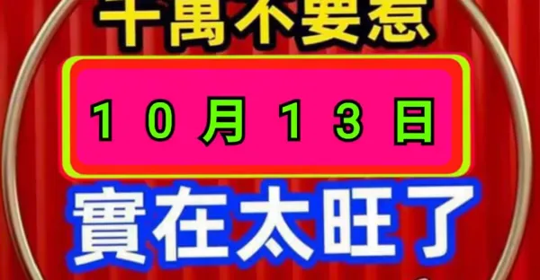 明天 10月14號 「 三生肖 」 橫財最旺!
