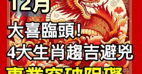 大喜臨頭!【12月】4大生肖趨吉避凶,事業突破阻礙,發財喜事成雙!