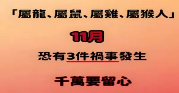 11月警告!!! 屬龍、鼠、雞、猴的人,3大禍事恐降臨,千萬小心!