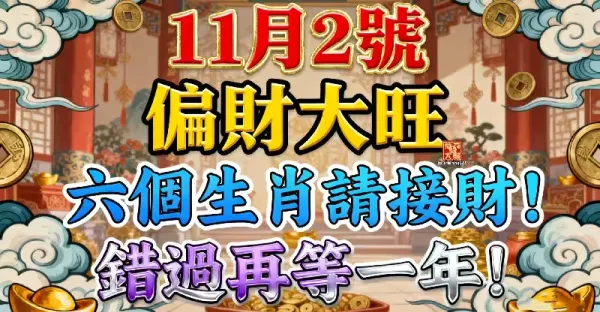11月2號 偏財大旺,六個生肖請接財!錯過再等一年!