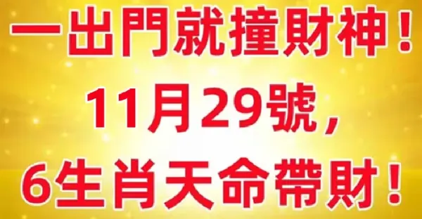 一出門就撞財神!11月29號 ,6生肖天命帶財