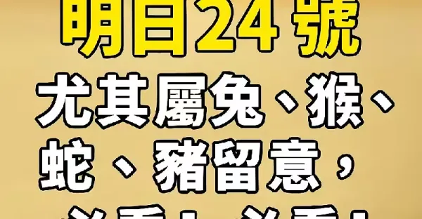 明日 24 號,尤其屬兔、猴、蛇、豬留意,必看