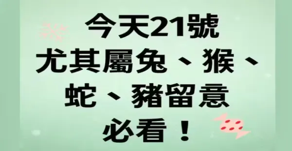 今天21號,尤其屬兔、猴、蛇、豬留意 必看!