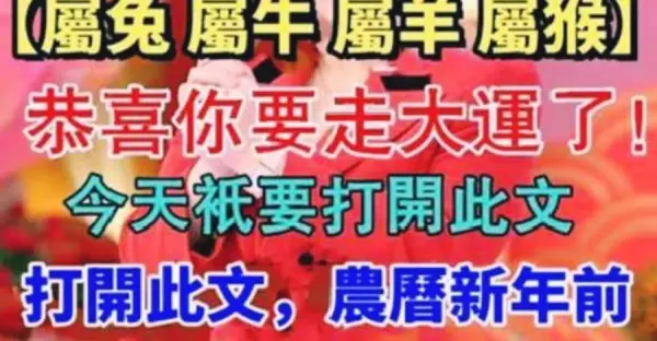 (屬兔 屬牛 屬羊 屬猴)恭喜要走大運了!打開此文,農曆新年前一切貧窮、霉運、疾病統統送走