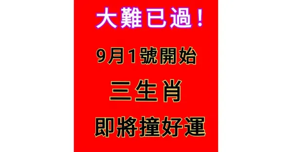 大難已過! 9月1號開始 三生肖 即將撞好運