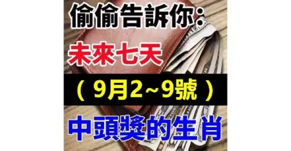 偷偷告訴你:未來七天(9月2 到 9號)中頭獎勢極高的生肖
