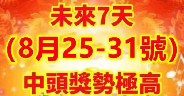 偷偷告訴你:未來7天(8月25 到 31號)中頭獎勢極高的生肖
