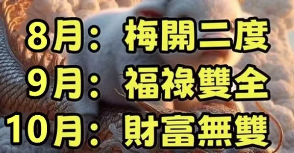 六生肖富貴又有餘,8月份梅開二度,9月福祿雙全,10月財富無雙