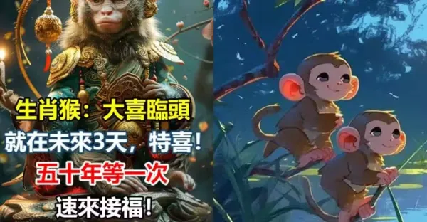 生肖猴:大喜臨頭,就在未來3天,特喜!五十年等一次!