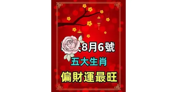六大生肖運勢飄紅:8月6號偏財旺,7號發橫財,8號中頭獎!