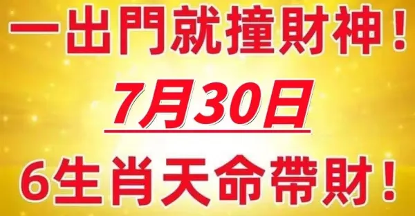 7月30號~31號:接財神,迎貴人,接橫財的生肖!