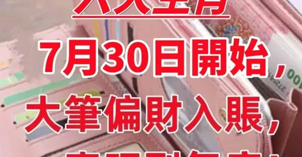 7月30日開始,大筆偏財入帳,一直旺到年底的生肖!