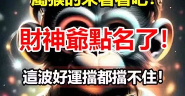 屬猴的來看看吧!財神爺點名了!這波好運擋都擋不住!