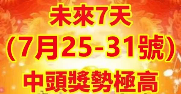 偷偷告訴你:未來7天(7月25 到 31號)中頭獎勢極高的生肖