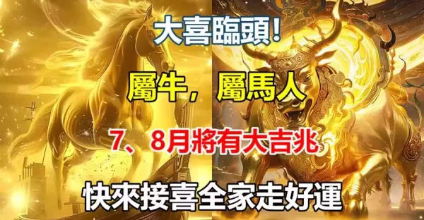 大喜臨頭!屬牛 屬馬人:「7、8月將有大吉兆」家裡有的快來「接喜」全家都會走好運.