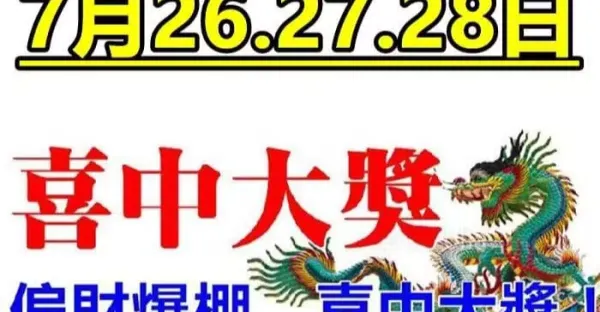 7月26.27.28日偏財爆棚,喜中大獎的生肖快來接