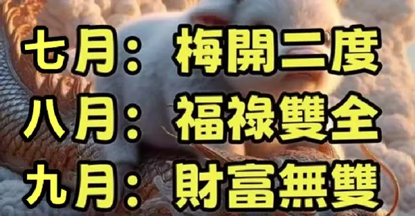 六生肖富貴又有餘,7月份梅開二度,8月福祿雙全,9月財富無雙