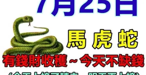 7月25日有錢財收穫,今天不缺錢的生肖快來接