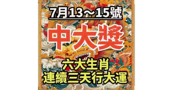7月13 到 15號連續三天行大運,中大獎的生肖有你嘛!