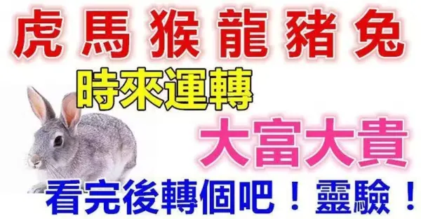 虎馬猴龍豬兔今年時來運轉,大富大貴,看完後轉個吧