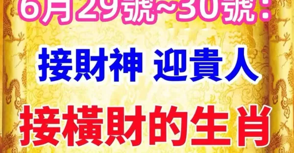 6月29號到30號:接財神,迎貴人,接橫財的生肖!