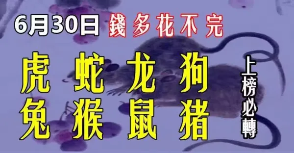 6月30日錢多花不完,財運旺久久的生肖快來接