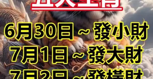 五大生肖:6月30日發小財,7月1日發大財,7月2日發橫財