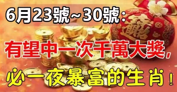6月23號~30號:有望中一次千萬大獎 ,必一夜暴富的生肖