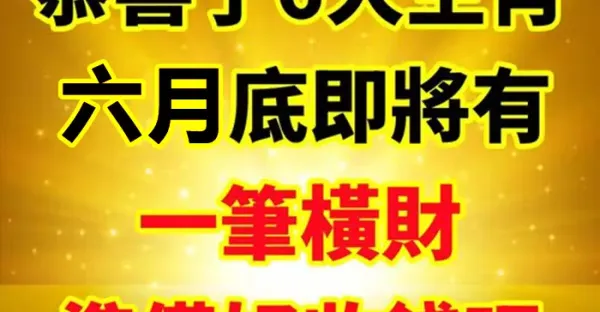 恭喜了6大生肖, 六月底即將有一筆橫財!準備好收錢吧!