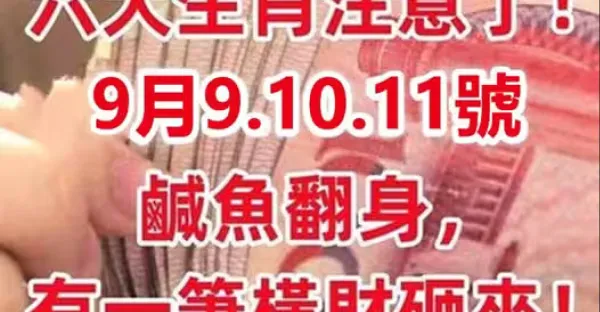 9月9.10.11號鹹魚翻身,有一筆橫財砸來的六大生肖!