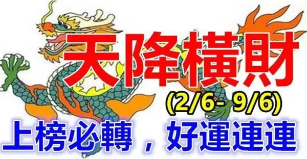 2號6月到 9號6月天降橫財,喜事多多的生肖