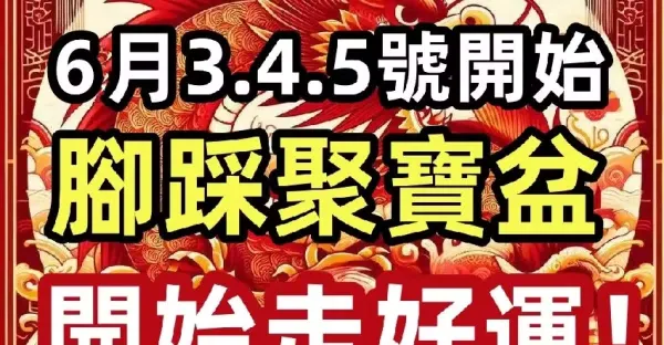 6月3.4.5號開始,腳踩聚寶盆的6生肖,開始走好運!