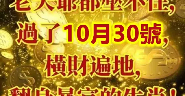 老天爺都壓不住, 過了10月30號 橫財遍地,翻身暴富的生肖…