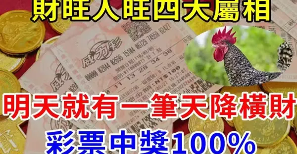 恭喜,明天起一筆橫財從天降,彩票中獎100%,財富如雨下,財旺人旺四屬相