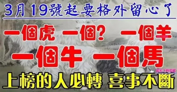 3月19號開始要格外留心了,一個虎,一個?,一個羊,一個牛,一個馬必要轉
