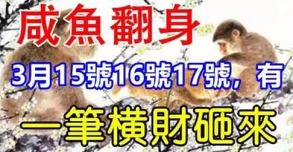 3月15.16.17號鹹魚大翻身,有一筆橫財砸來的生肖