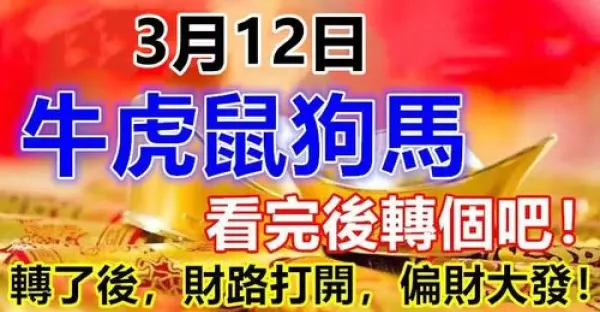 3月12日生肖(牛虎鼠狗馬)財路打開,偏財大發