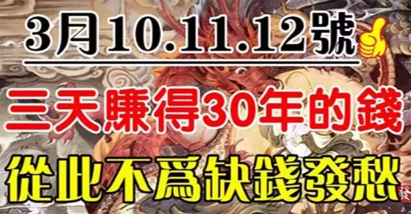3月10.11.12號橫財運爆棚,賺錢如流水的生肖快來接
